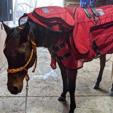 If you have s trot-term need of a blanket for your horse or dog, consider a 30 day rental option. Blankets are also available for sale. Please contact me directly for pricing. I will make sure you get the right blanket, leg wraps or mat for your needs.