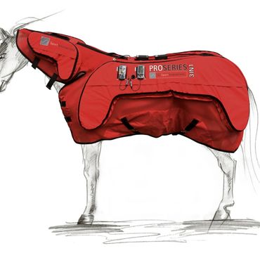 Made in Germany of sturdy materials, the blanket fits over the neck and body much like a standard horse blanket.